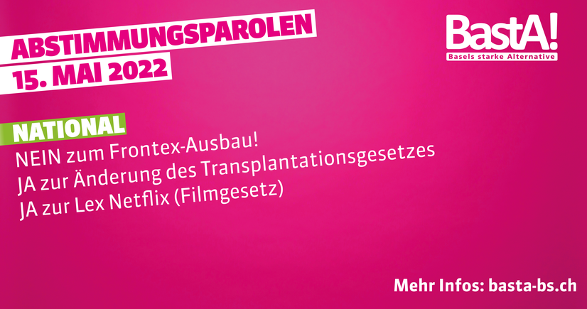 NEIN zum Frontex-Ausbau! JA zur Änderung des Transplantationsgesetzes JA zur Lex Netflix (Filmgesetz)