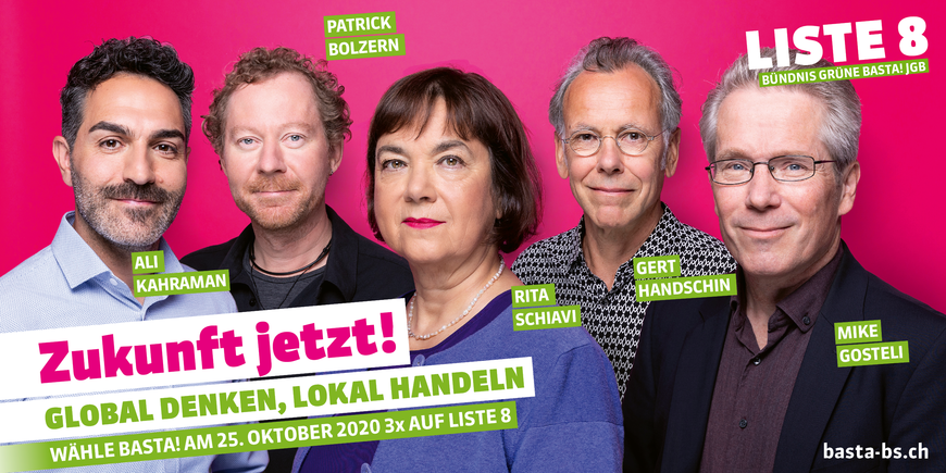 Wir fordern Klimagerechtigkeit ein und unterstützen die Initiative Basel 2030, denn die Zeit drängt. Banken und Pensionskassen dürfen nicht länger in fossile Energieträger investieren. Unsere Pensionskassen und Banken müssen ihren Beitrag zur Klimagerechtigkeit leisten. Auch wir tragen mit der Vision eines autofreien Basels dazu bei. Unser ÖV wird gratis, Velo und Fusswege werden ausgebaut, attraktiv und grün. Unsere Mobilität ist klimaneutral und sozial. Wir arbeiten schnell an einem Verbot von Nachtflügen und Privatjets.