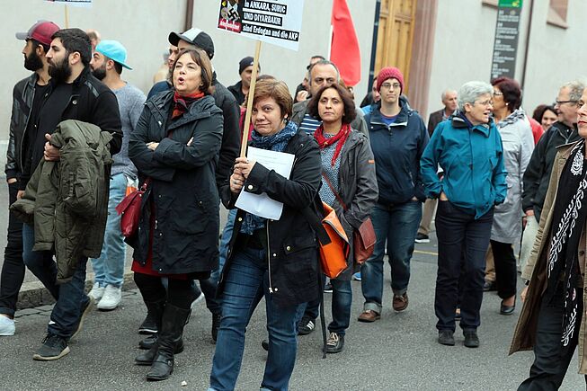 Um unsere Trauer öffentlich zum Ausdruck zu bringen, rufen wir zusammen mit unseren kurdischen und türkischen Freundinnen und Freunden zu einer gemeinsamen friedlichen Demonstration auf. Auch wenn die Täterschaft des entsetzlichen Verbrechens noch unbekannt ist, fest Präsident Erdogan in der Verantwortung. Erdogan hat auf den Wahlsieg der prokurdischen Partei HDP im Juni dieses Jahres mit einer Eskalation der Gewalt und der Repression reagiert und gegen alle Menschen gehetzt, die nicht hinter ihm stehen. Ob vor diesem Hintergrund das Verbrechen von Ankara je aufgeklärt wird, ist fraglich. Wir fordern daher eine unabhängige Untersuchung der beiden Bombenanschläge.