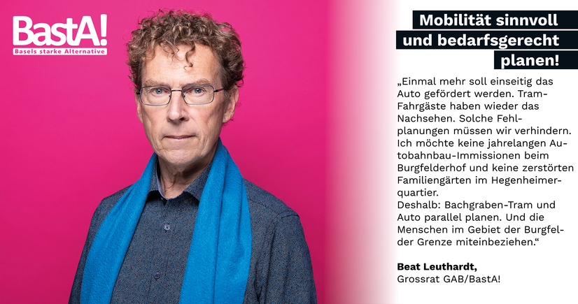 Der Grosse Rat hat am 10.6.2020 die Motion Vitelli «Kein Zubringer Allschwil ohne Bachgrabentram» mit der Verpflichtung überwiesen, dass die Basler Regierung nur dann in die Realisierung der Hochleistungsstrasse Zuba einwilligen darf, wenn dies mit dem Tramprojekt koordiniert ist.