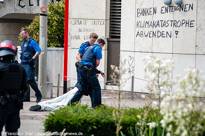 Während Banken und Konzerne diesen Planeten anzünden, werden Klimaaktivist*innen inhaftiert und ohne Not festgehalten. Den Aktivist*innen wurde der friedliche, freiwillige Abzug verwehrt. Sie wurden stattdessen unter Anwendung von Zwangsmassnahmen weggebracht und teilweise über den Boden geschleift. Die Art und Weise der Räumung muss Konsequenzen haben.