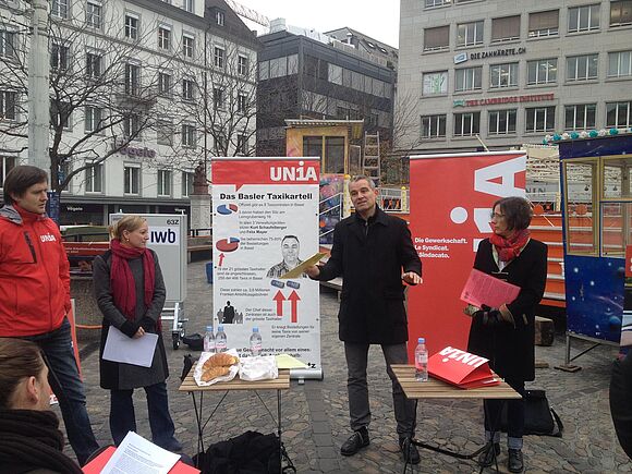 Das neue Taxigesetz bringt für die TaxifahrerInnen also keinerlei Verbesserungen, dabei wären Schutzmassnahmen und eine gewisse Reglementierung bitter nötig, denn die Arbeitsbedingungen sind mehr als prekär. Momentan sind in Basel 466 Taxis unterwegs und 720 Taxichauf-feure versuchen von dieser Dienstleistung zu leben. Im Gewerbe rechnet man gemeinhin, dass pro 1000 EinwohnerInnen ein Taxi profitabel betrieben werden kann. In Basel wären das 190 Taxis. Neben dem Problem, dass schon jetzt zu viele Taxis in Basel unterwegs sind, sollen nun auswärtige Taxis die Erlaubnis bekommen, in den Strassen KundInnen aufzunehmen, was –wie das Beispiel Zürich zeigt – zu einer weiteren Verschärfung der Situation führt. In Zürich fahren mittlerweile zwischen 400 und 500 illegale Landtaxis und die Situation ist chaotisch. Und als ob das nicht genügt kommt nun die Konkurrenz durch den privaten Fahrdienst Uber hinzu. Es kommt einem vor, als wolle das Gesetz mutwillig Chaos stiften. Denn obwohl Uber offensichtlich auch ein Taxidienst ist – er transportiert gegen Entgelt Personen von A nach B – wurde der amerikanische Konzern nicht als Taxidienst eingestuft und somit nicht dem Taxigesetz unterstellt. Wie soll das Taxigewerbe mit diesen unterschiedlich langen Spiessen funktionieren? Baschi Dürr und die FDP scheinen schweizweit Uber zu protegieren und glauben so wohl in eine neue neoliberale Welt vorzustossen. Doch was die Folgen sind können wir weltweit beobachten. Prekarisierte Arbeitsbedingungen und ein zerstörtes öffentliches Taxiwesen. Bei öffentlichen Gütern wie der garantierten Mobilität funktioniert der freie Markt nicht!