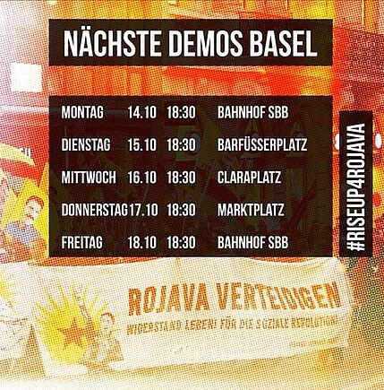 Schweizweite Friedensdemonstration gegen den Angriffskrieg der Türkei in Nordostsyrien: Samstag, 26. Oktober, 13:30 Uhr Bern, Schützenmatte