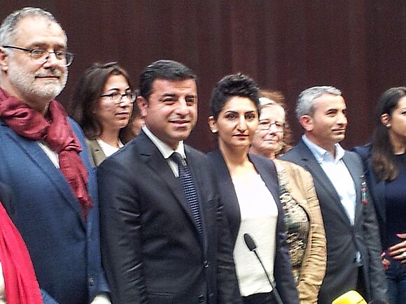 Demirtas rief zur Solidarität mit dem kurdischen Volk auf. Aber es gehe nicht nur um die Kurdinnen und Kurden. Auch andere Volksgruppen würden in der Türkei verfolgt und unterdrückt. Die HDP setze sich für die Rechte aller Minderheiten ein.