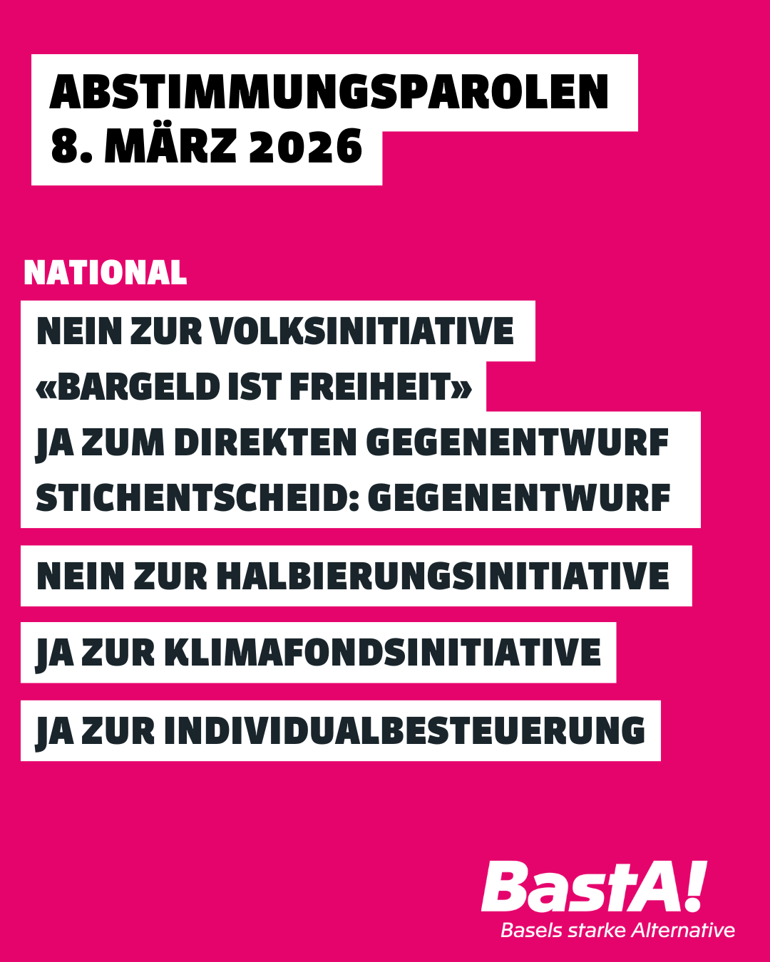 Mit dem Rücktritt von Tonja Zürcher verliert BastA! eine profilierte und langjährige Stimme im Grossen Rat, die sich konsequent für soziale Gerechtigkeit, Klimaschutz und Gleichstellung eingesetzt hat. Für sie wird Franziska Stier in den Grossen Rat nachrücken.