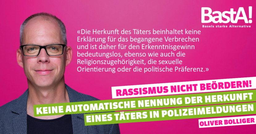 Der Stadtrat Richard Wolff, Vorsteher des Sicherheitsdepartements, begründet diese Massnahme mit dem diskriminierenden Effekt, welcher die automatische Nennung der Nationalität haben kann. Es kann dadurch den Eindruck entstehen, dass die Tat mit der Nationalität erklärt werden kann.