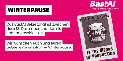 Zum Internationalen Tag der Menschenrechte reicht BastA! ein umfassendes Vorstosspaket ein, das gravierende Lücken im Umgang mit Menschen in ausländerrechtlicher Administrativhaft im Kanton Basel-Stadt schliesst. «Während viele von uns schockiert in die USA und die Abschiebeindustrie Donald Trumps blicken, verursacht auch das Abschieberegime der Schweiz viel menschliches Leid», erklärt Franziska Stier, Grossrätin BastA!.